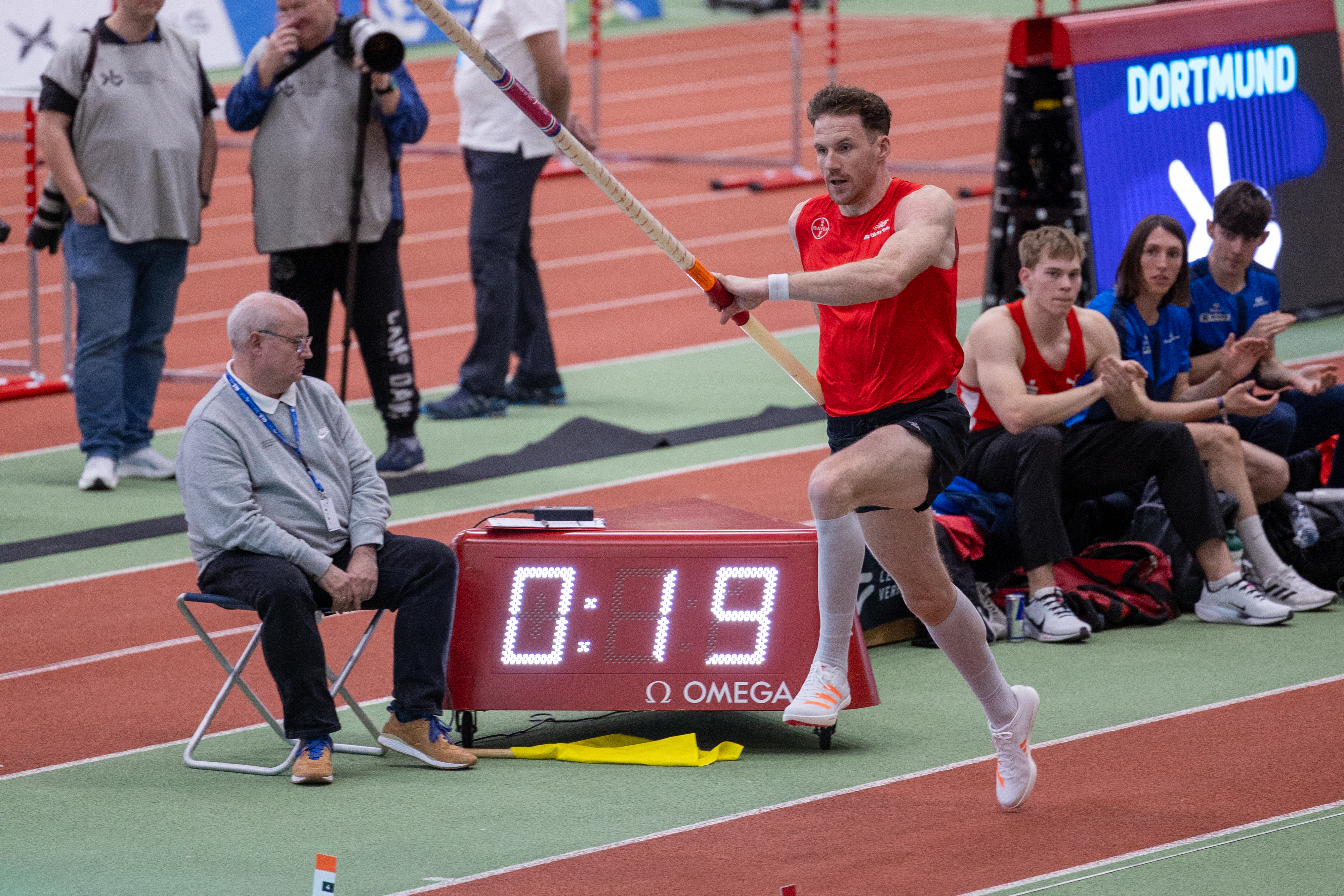 Mit Torben Blech ging im Stabhochsprung der Männer der Titelverteidiger an den Start und erwischte einen bitteren Tag. Nach erfolgreichem Einstieg über 5,40m ließ er 5,50m aus und scheiterte drei Mal an den folgenden 5,60m. Hiermit belegte er Rang vier.
